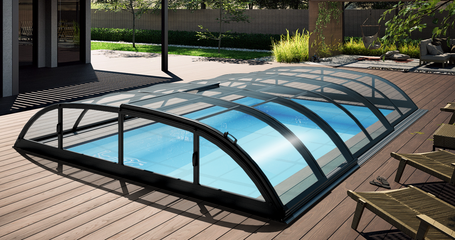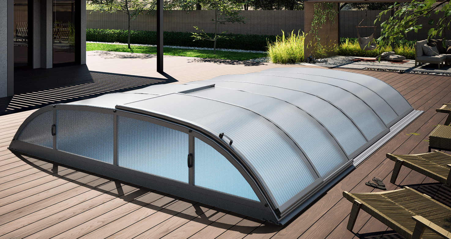 Pooltak ICON 4×8 med sarg klarplast antracit